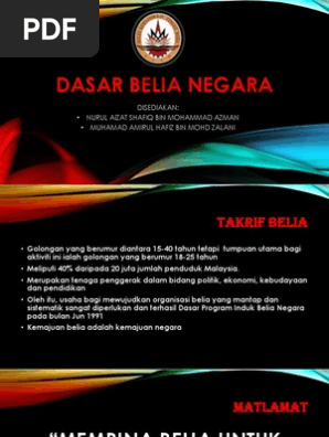 Membina Perpaduan Belia Menerusi Model Baru Aspirasi serta hala tuju Menteri Belia Sukan YB Dato Sri Reezal Merican Naina Merican yang mencetuskan idea pembaharuan semasa sesi dialog bersama Ahli Dewan tertinggi Majlis Belia Malaysia MBM iaitu Model Baharu Pembangunan Belia memberi nafas baru kepada pembangunan belia di negara. Nah setelah membaca artikel ini penulis berharap pembaca dapat memahami secara lebih baik mengenai apa itu bela negara dan apa saja yang menjadi dasar hukumnya. Image Of The Month Buku Dasar Belia.